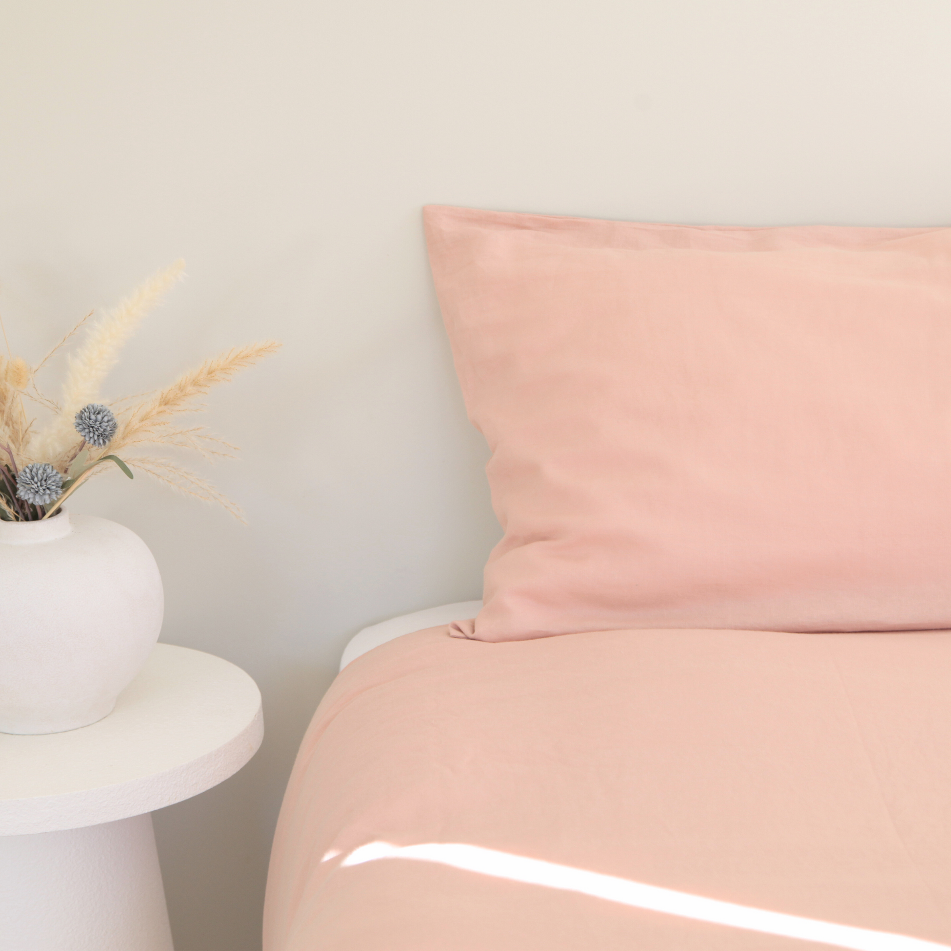 The Sunset color is a soft, dusky pink inspired by golden-hour skies. It brings a gentle warmth and understated romance to any bedroom, perfect for creating a cozy, elevated sanctuary.